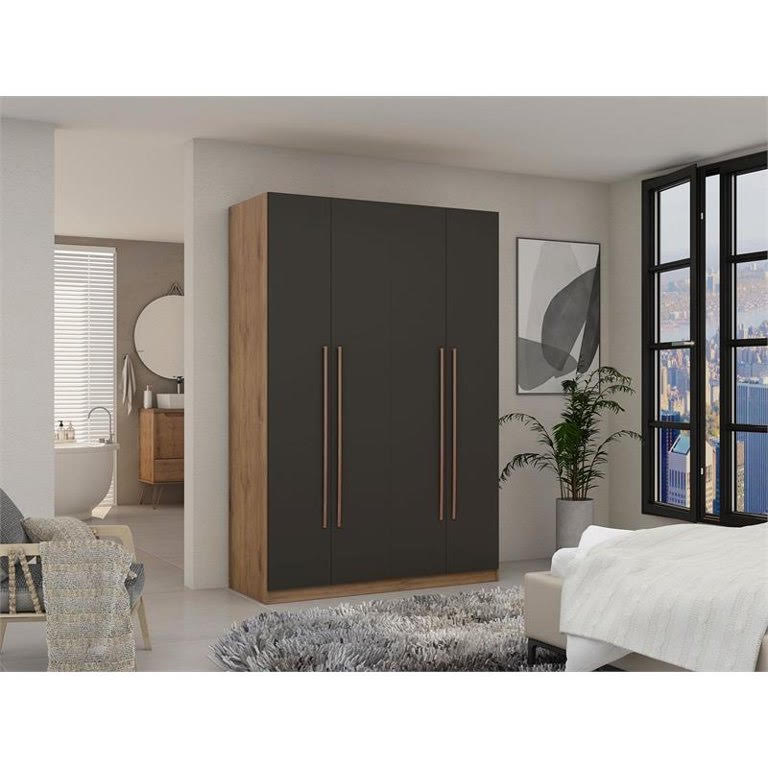 Gramercy Modern 2-Section Freestanding Wardrobe Armoire Closet in Nature & Textured Grey